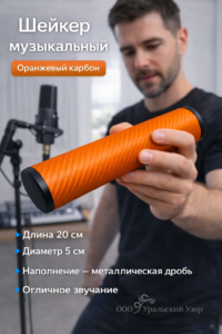 Шейкер музыкальный металлический оранжевый карбон — яркий акцент и мощное звучание