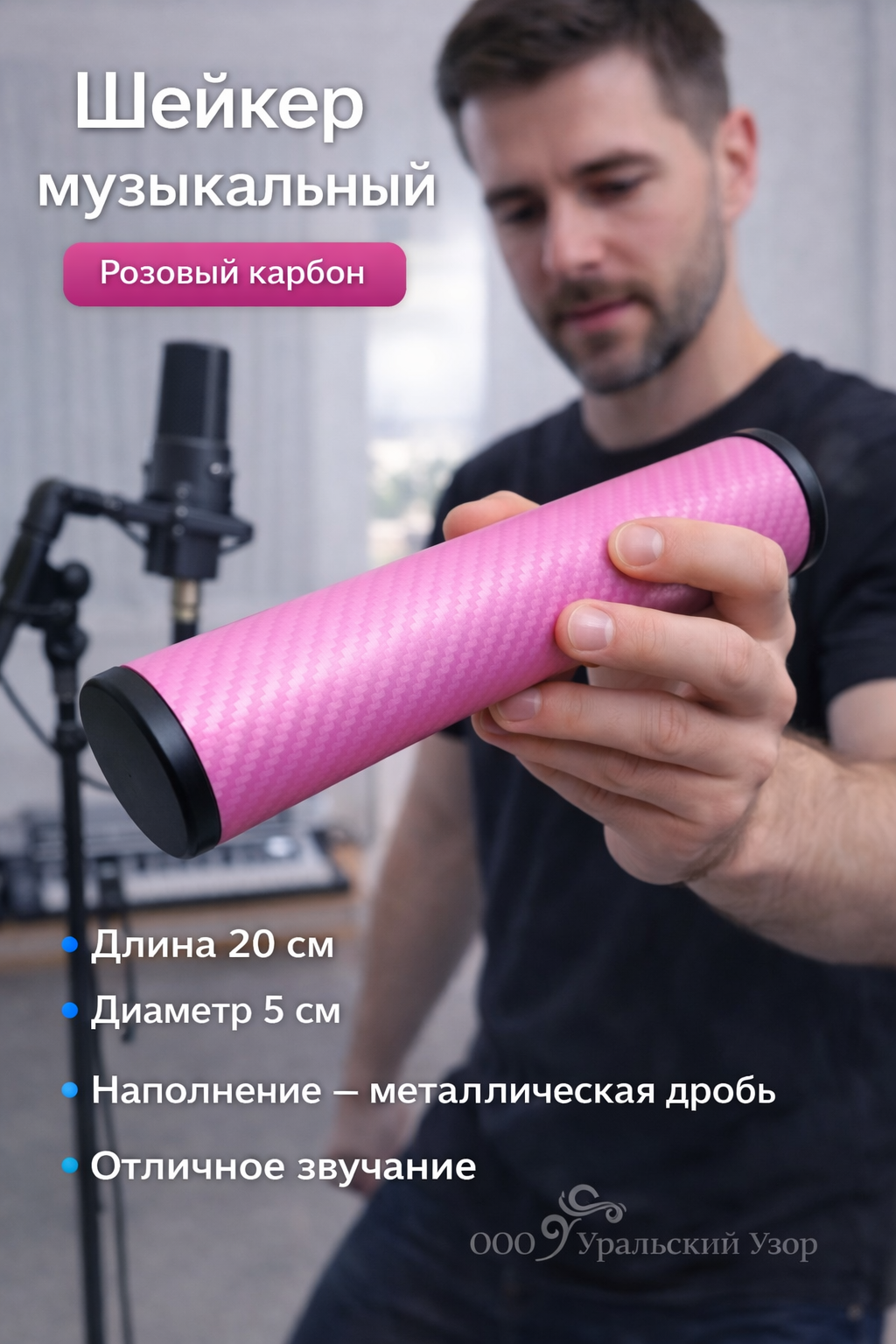 Шейкер музыкальный металлический розовый карбон — стиль, лёгкость и мощное звучание