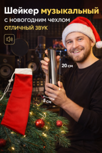 Шейкер музыкальный хромированный с новогодним чехлом — праздничное настроение и мощное звучание