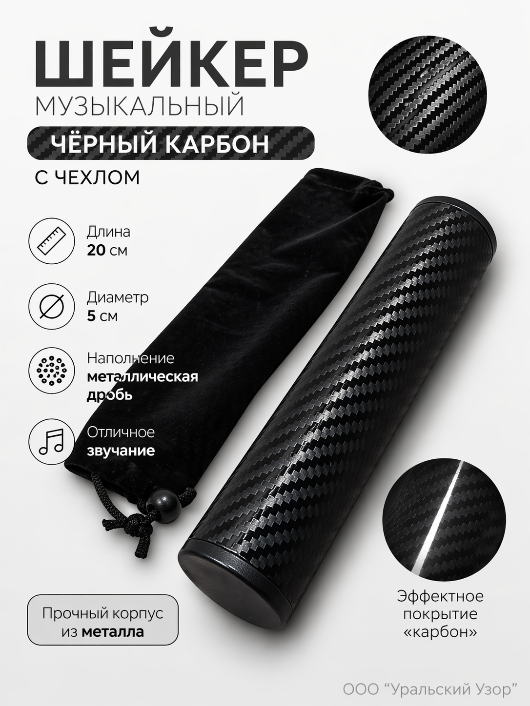 Музыкальный шейкер в цвете чёрный карбон с чехлом — это идеальное сочетание профессионального звука, надёжности и удобства. Прочный металлический корпус обеспечивает долговечность, а покрытие с эффектом карбона в чёрном цвете придаёт инструменту стильный, современный и дорогой внешний вид.