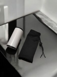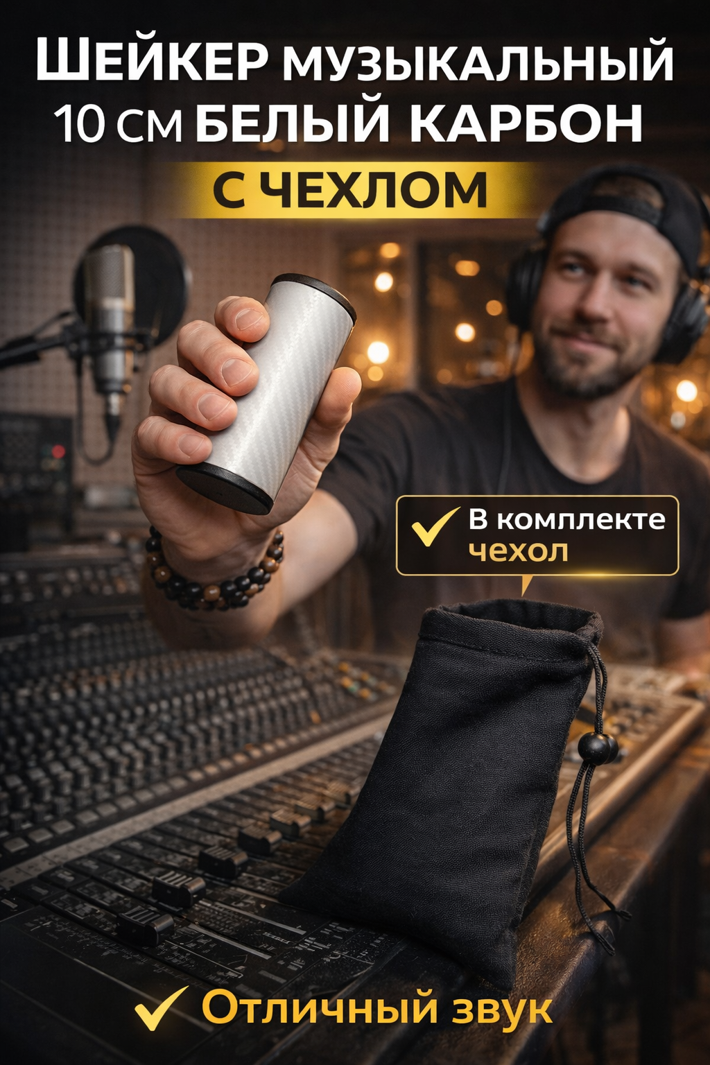 Шейкер музыкальный металлический белый карбон 10 см с чехлом — компактность, чистый стиль и защита